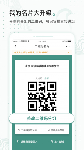 医生只需让患者通过微信扫描云鹊行二维码名片,即可以与患者建立医患关系。