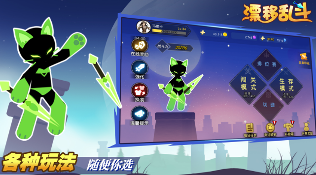抖音漂移乱斗是一款十分爽快的动作闯关类游戏,游戏的玩法非常的轻松和激情,玩家控制火柴人战士进行乱斗PK,丰富的武器和装备自由的使用,使用连击释放大招击败强敌。